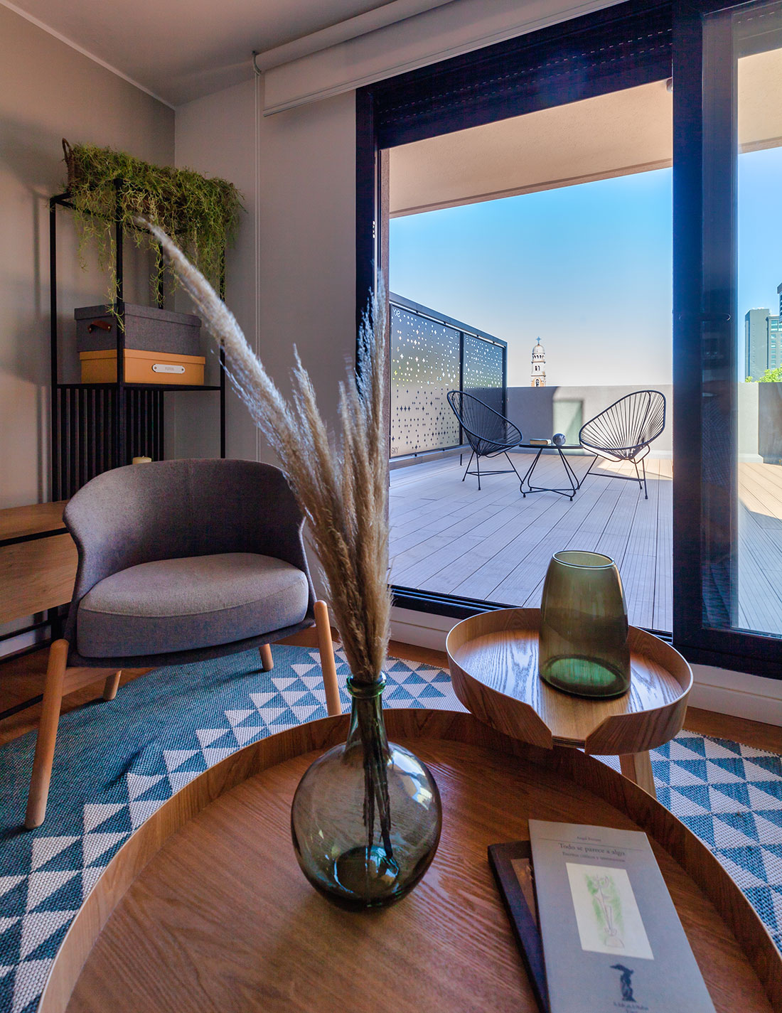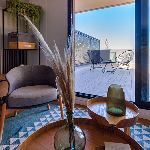 Disfrutar de increíbles vistas al mar desde la terraza que bordea todo tu apartamento es uno de los privilegios de estar en lo más alto.