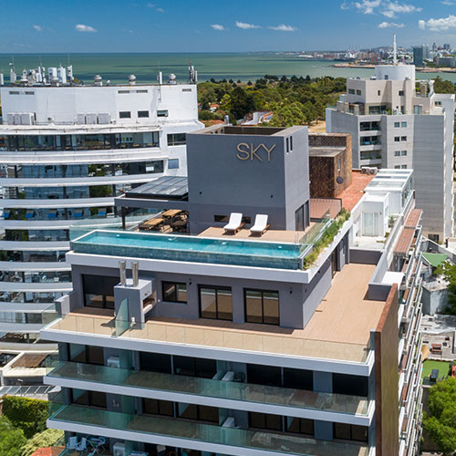 SKY Punta Carretas es un edificio que sale de los estereotipos del mercado combinando la mejor ubicación de la ciudad con un diseño único y amenities exclusivas.